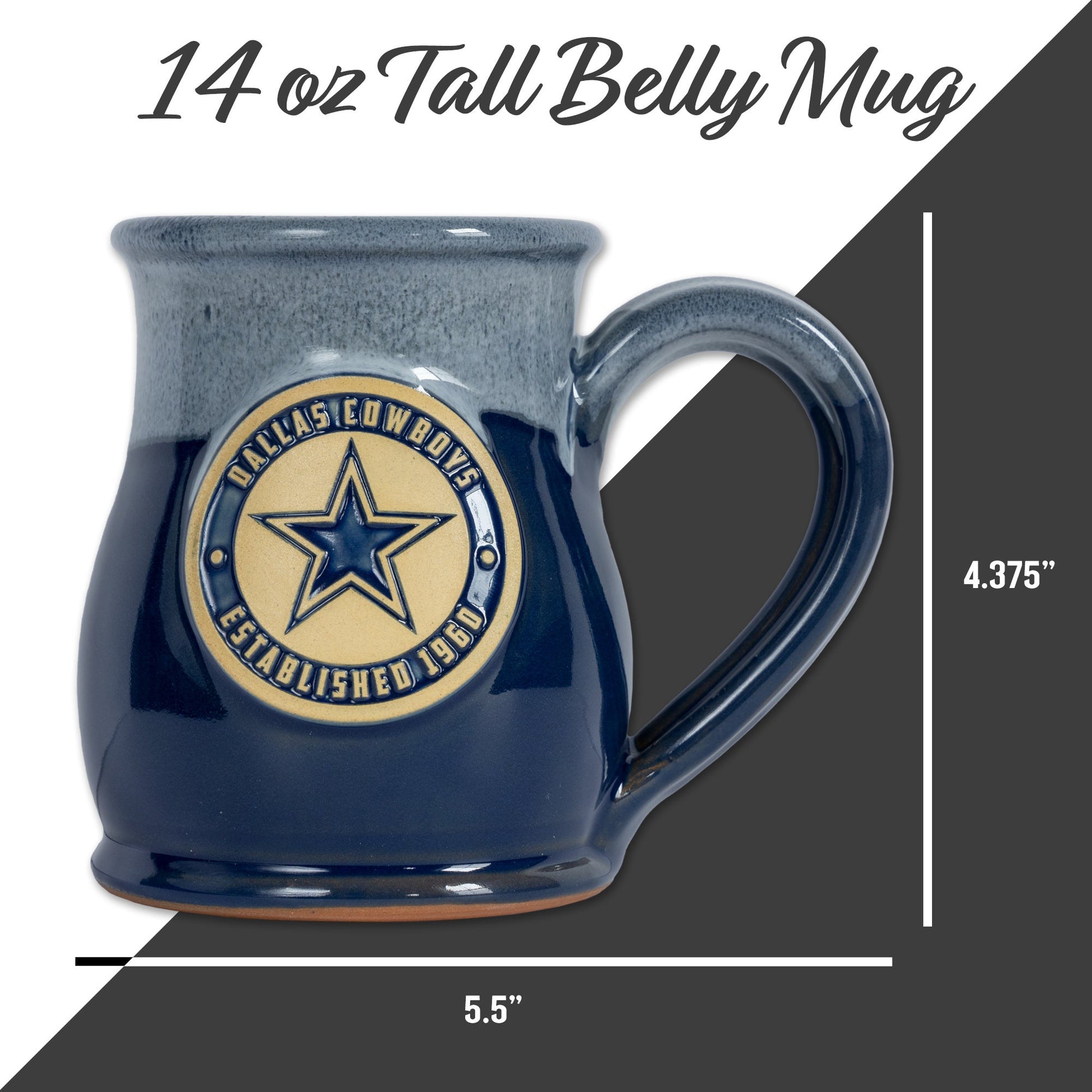 Dallas Cowboys 14-oz Two-Tone Tall Belly Mug, Handmade Large Ceramic Coffee Mug With Team Logo, Premium Deneen Pottery Made in USA