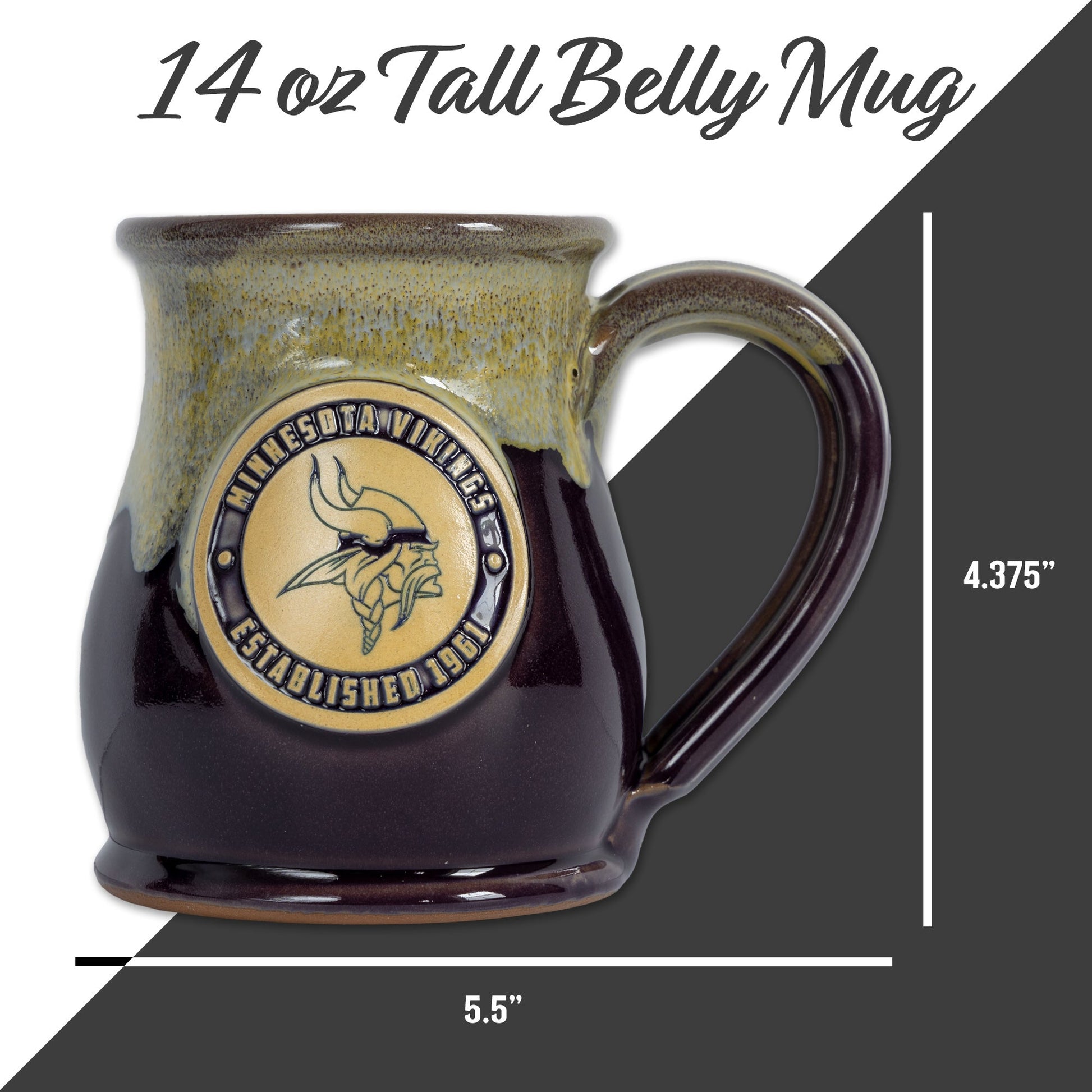 Minnesota Vikings 14-oz Two-Tone Tall Belly Mug, Handmade Large Ceramic Coffee Mug With Team Logo, Premium Deneen Pottery Made in USA