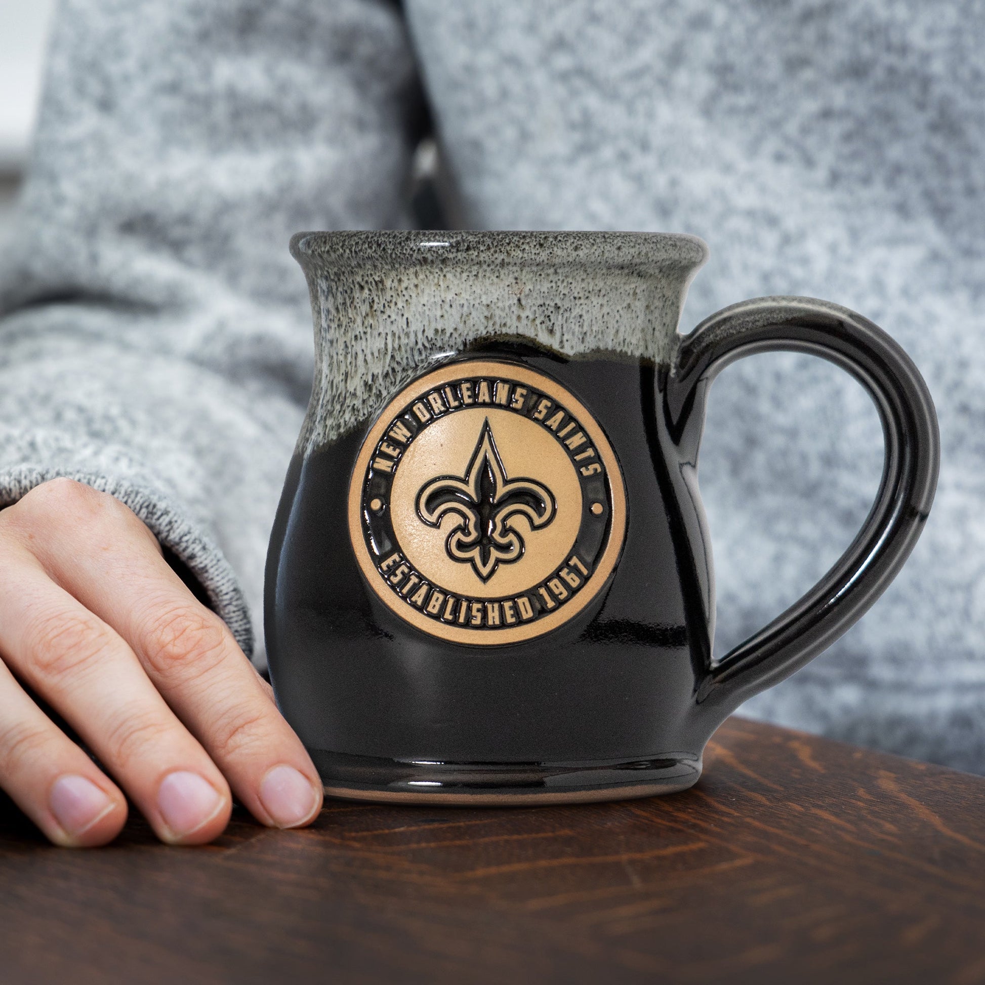 New Orleans Saints 14-oz Two-Tone Tall Belly Mug, Handmade Large Ceramic Coffee Mug With Team Logo, Premium Deneen Pottery Made in USA