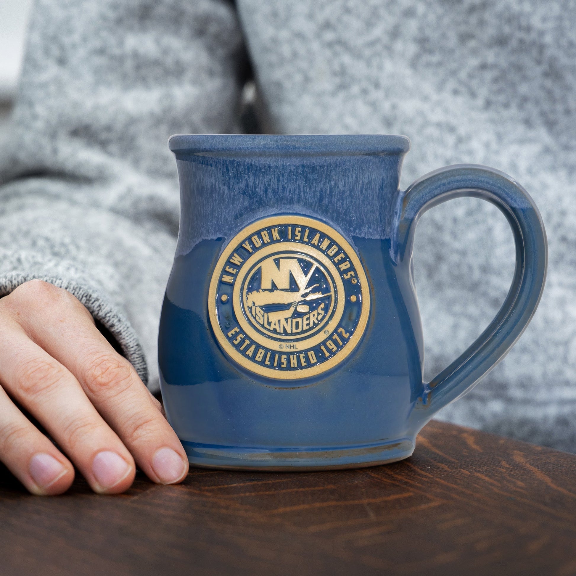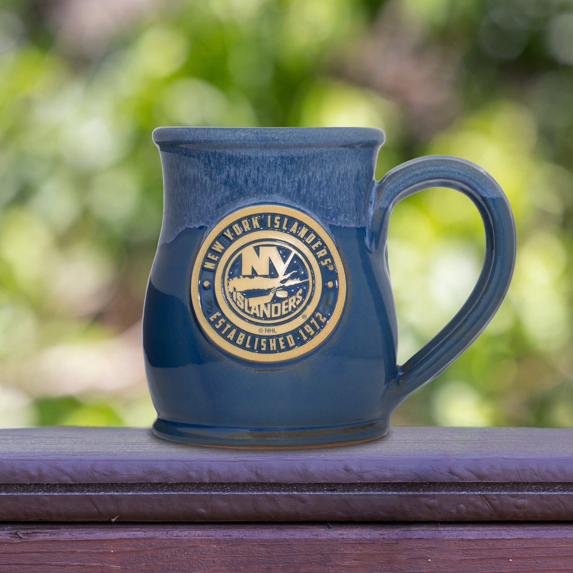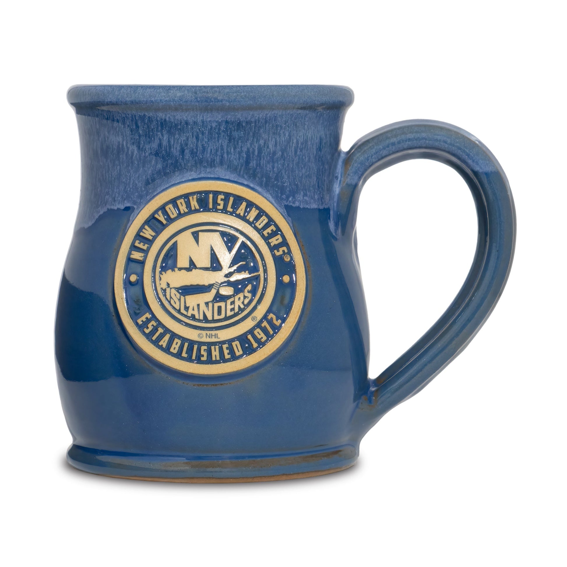 New York Islanders 14-oz Two-Tone Tall Belly Mug, Handmade Large Ceramic Coffee Mug With Team Logo, Premium Deneen Pottery Made in USA