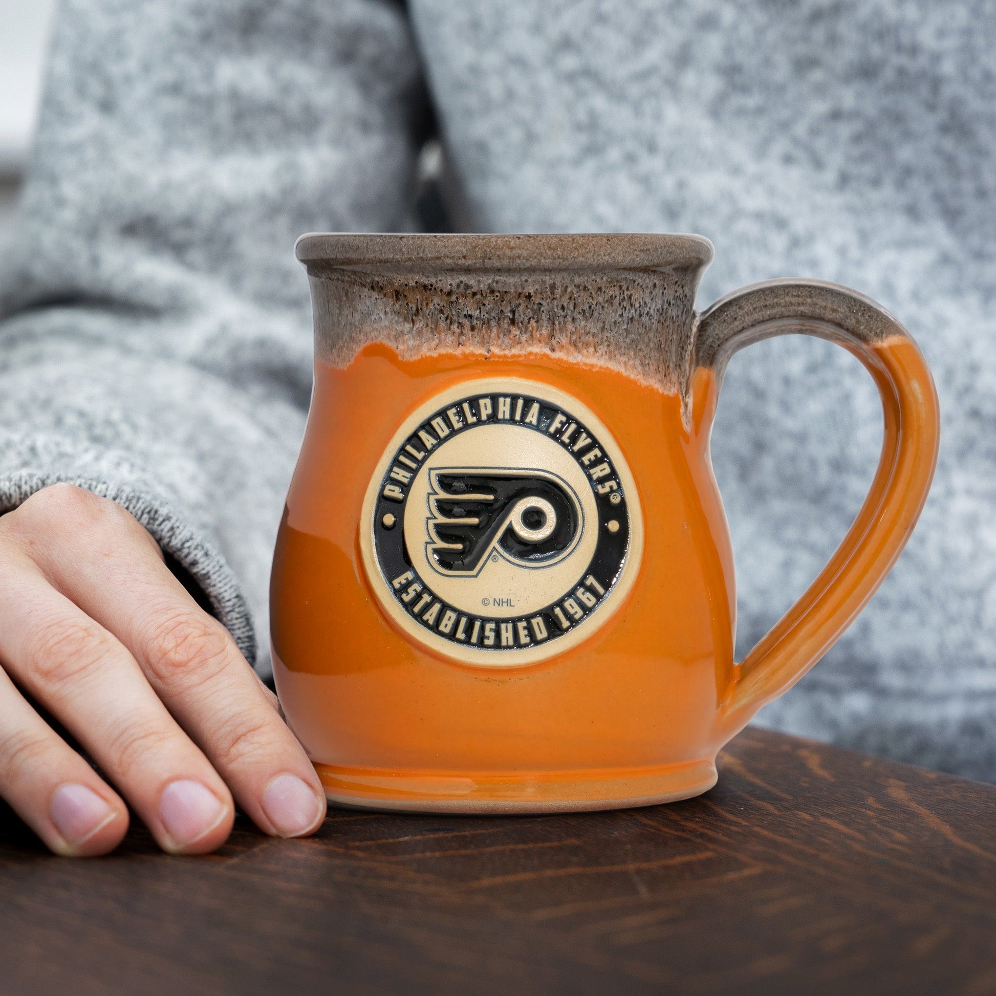 Philadelphia Flyers 14-oz Two-Tone Tall Belly Mug, Handmade Large Ceramic Coffee Mug With Team Logo, Premium Deneen Pottery Made in USA