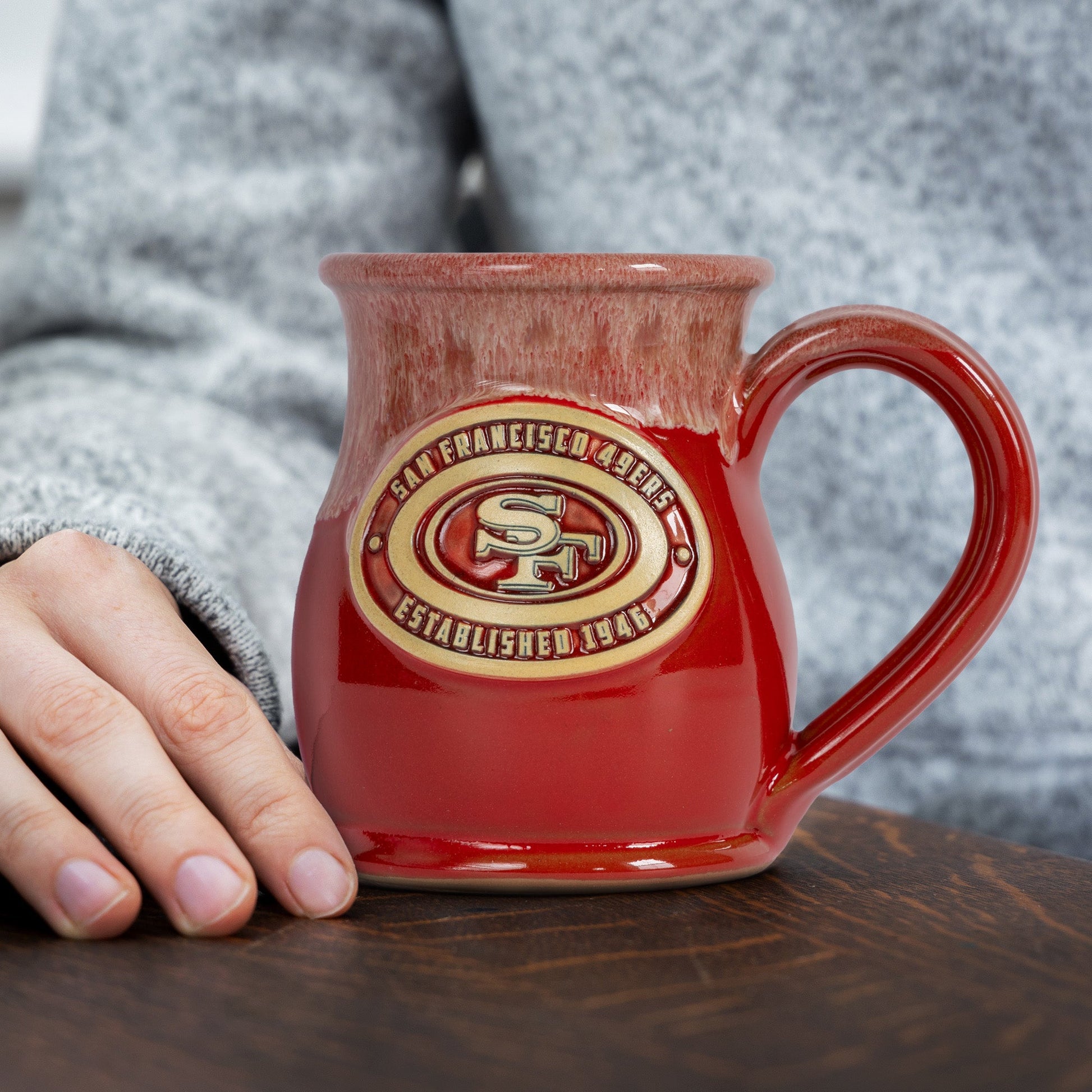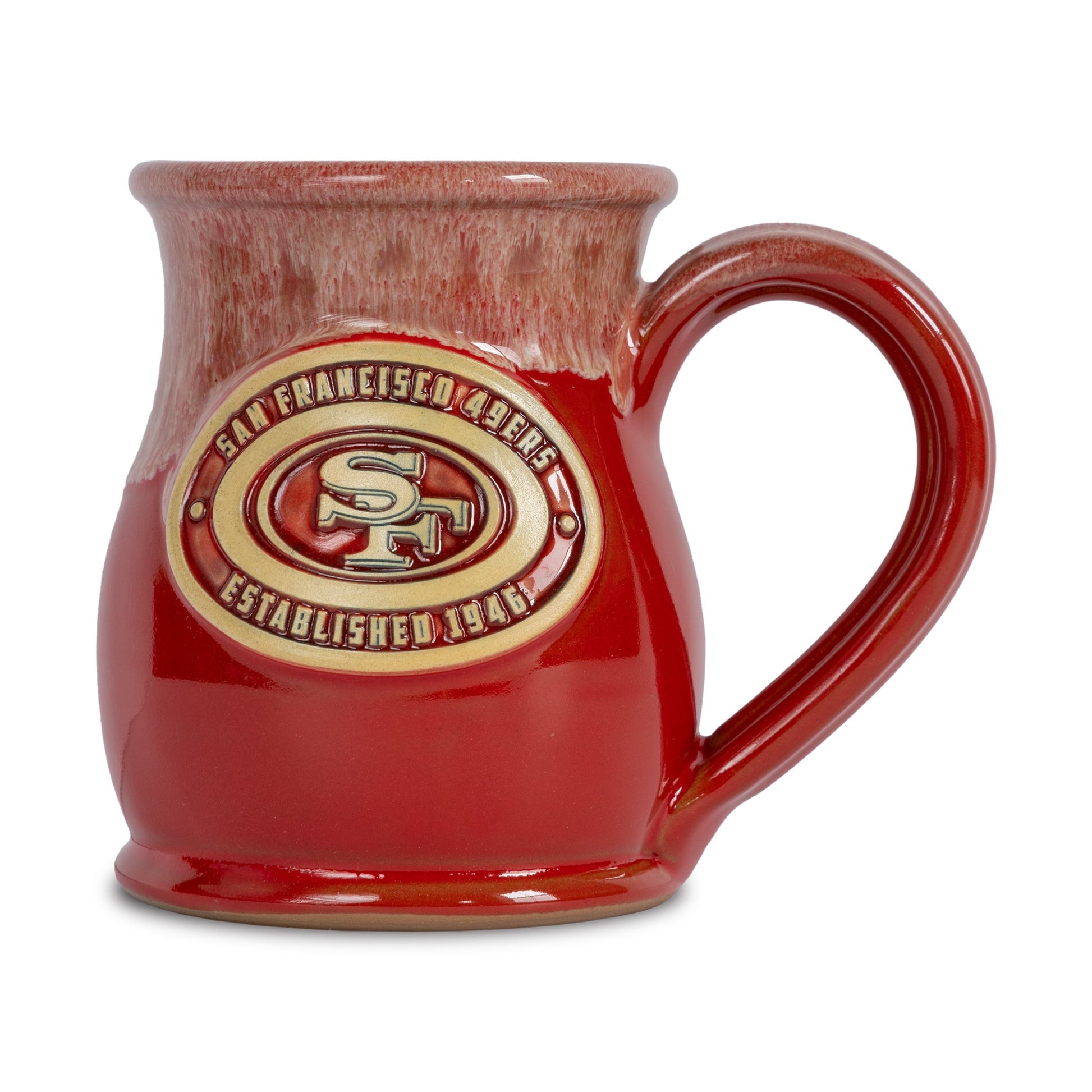 San Francisco 49ers 14-oz Two-Tone Tall Belly Mug, Handmade Large Ceramic Coffee Mug With Team Logo, Premium Deneen Pottery Made in USA