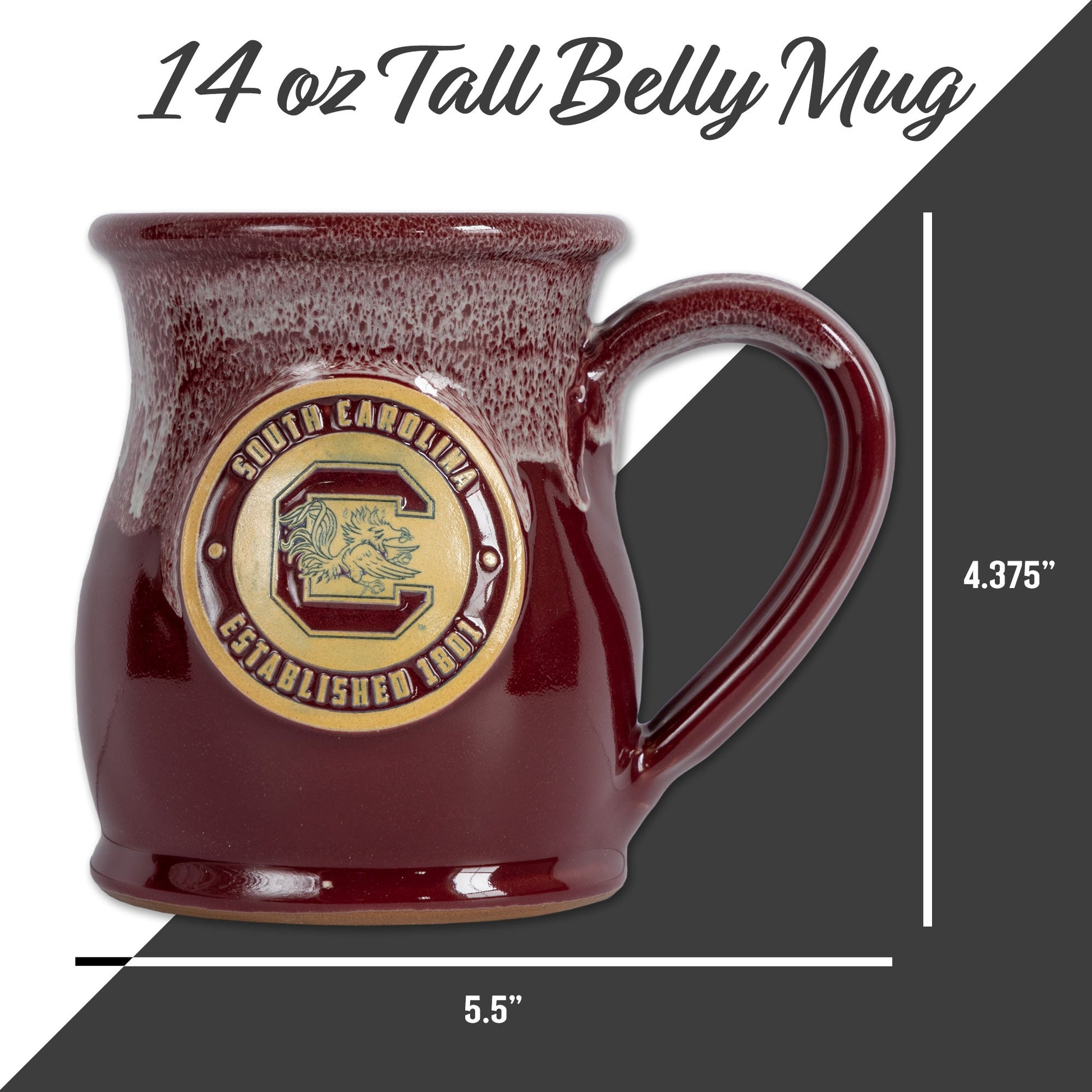 South Carolina Gamecocks 14-oz Two-Tone Tall Belly Mug, Handmade Large Ceramic Coffee Mug With Team Logo, Premium Deneen Pottery Made in USA